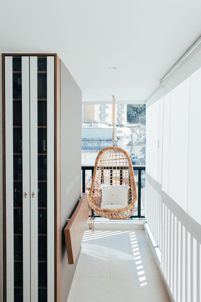Aqui usei tons claros e muitos detalhes em madeira. A inspiração principal dos clientes foi um hotel em uma cidade de praia que visitaram, e queria recriar de alguma forma aquela atmosfera.